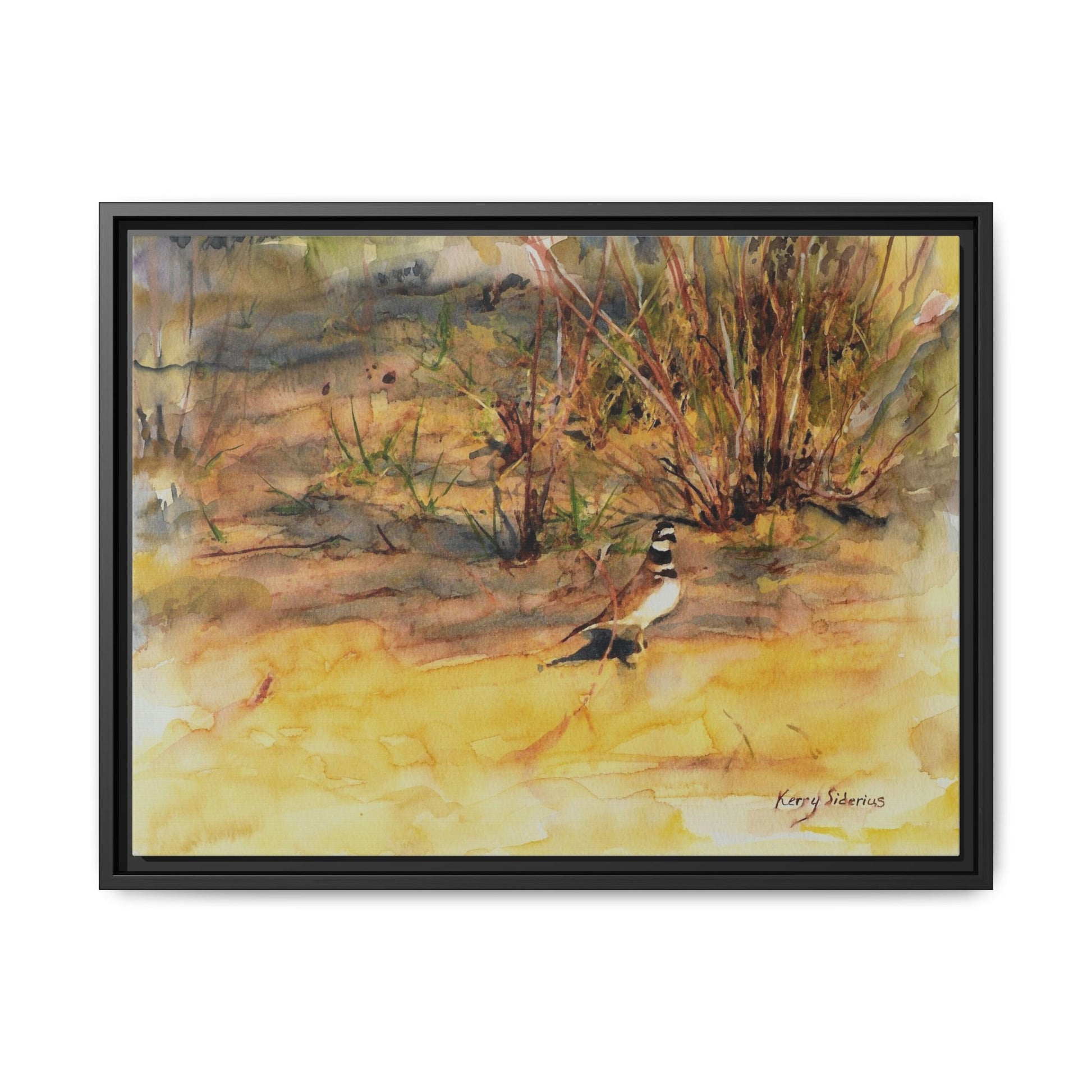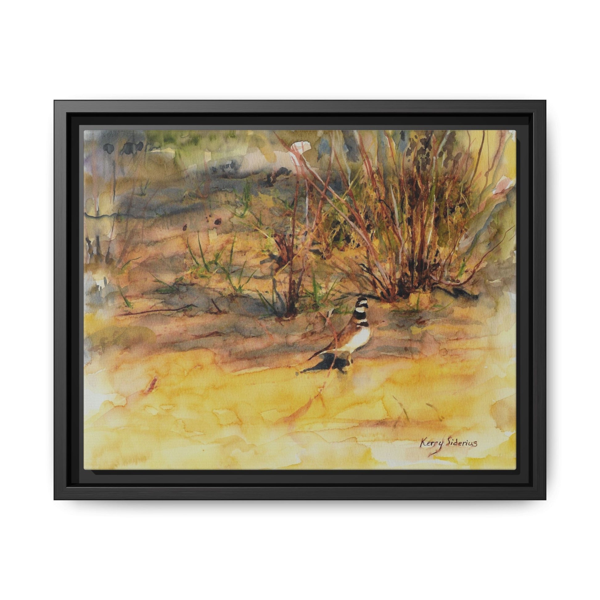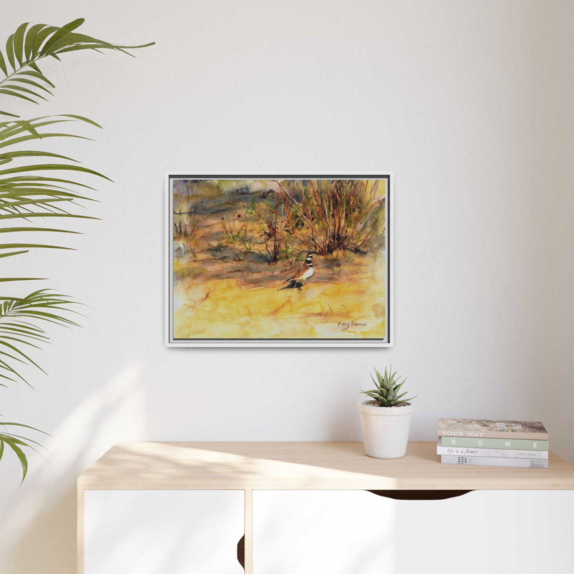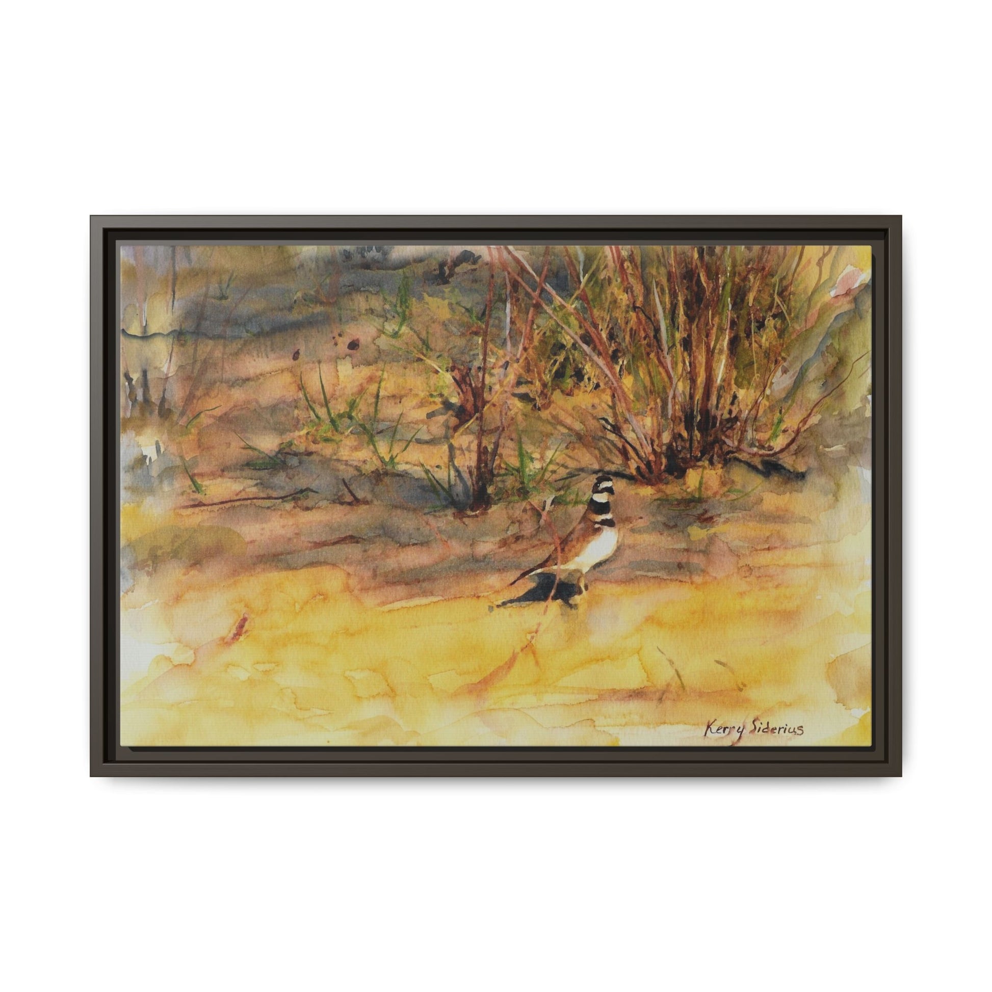 "Killdeer male on the banks of the Columbia" Framed Canvas (Frames Available in White, Espresso, or Black)