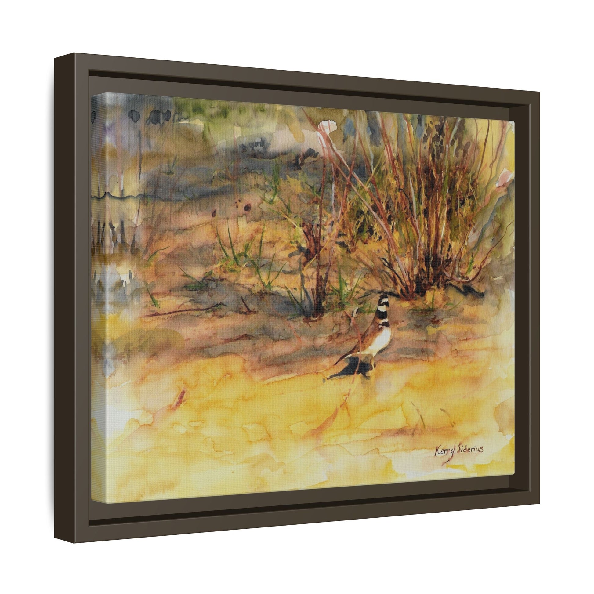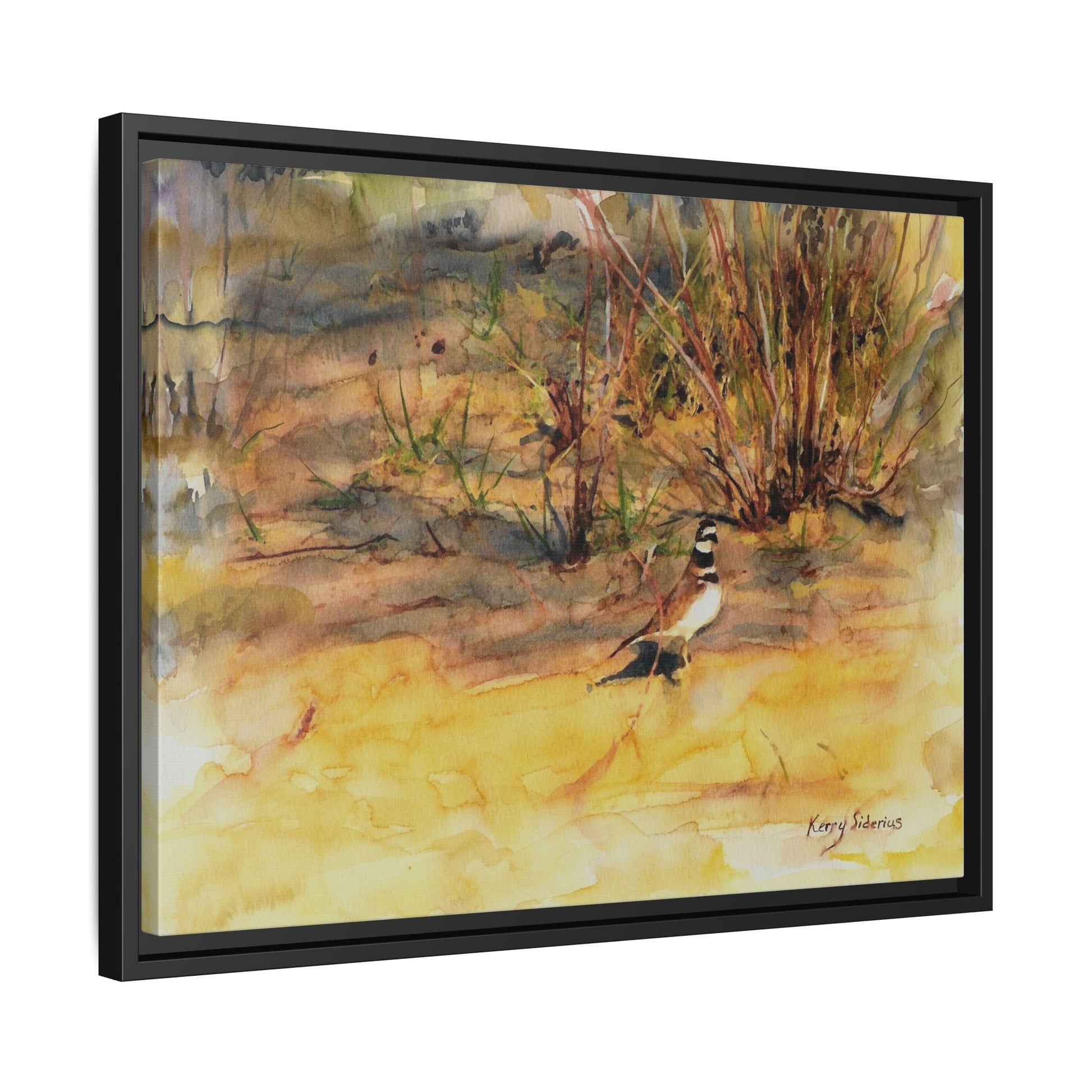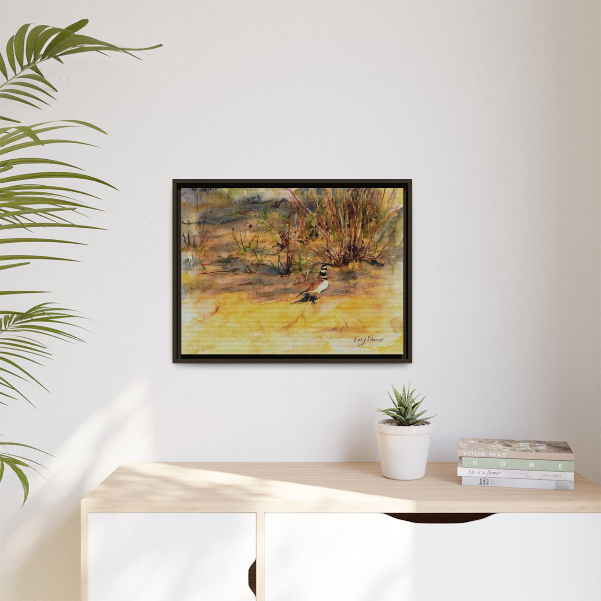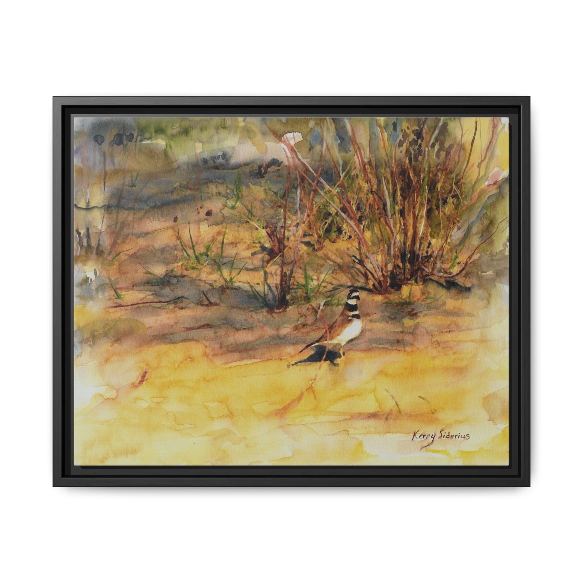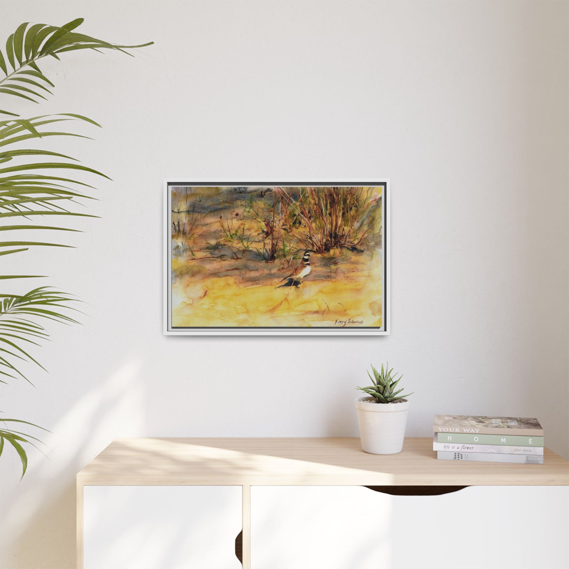 "Killdeer male on the banks of the Columbia" Framed Canvas (Frames Available in White, Espresso, or Black)